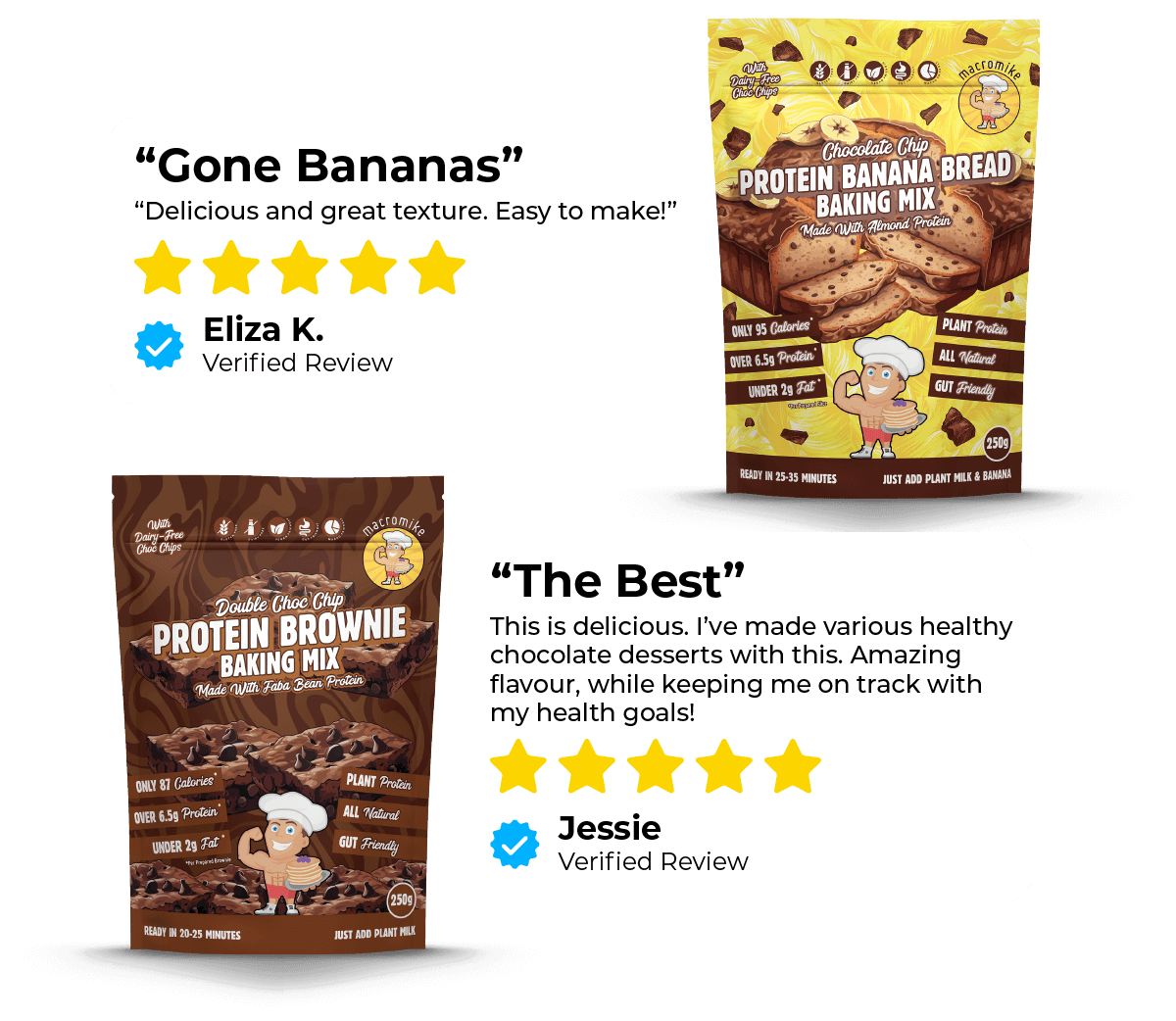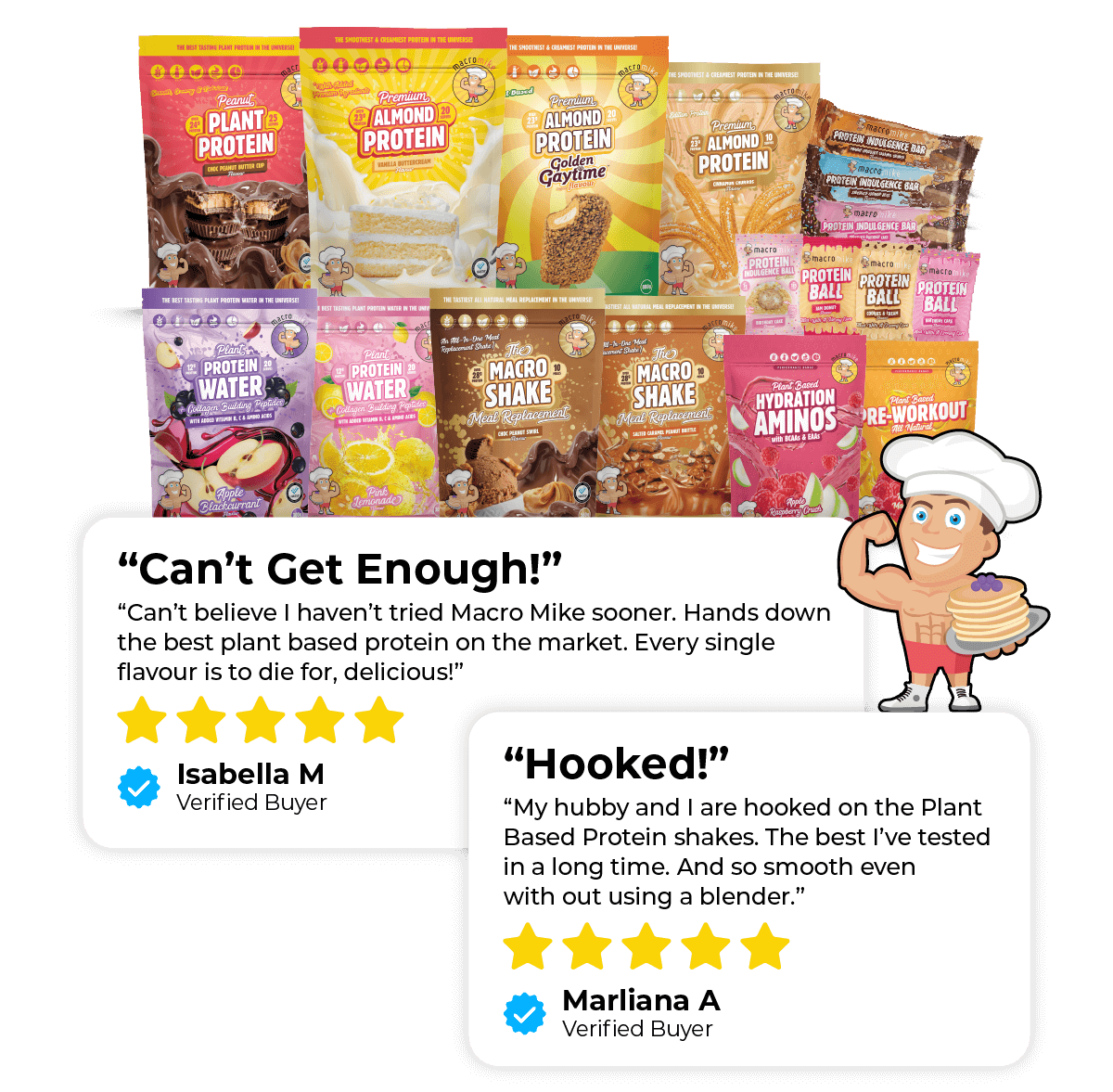 At Macro Mike, we’re passionate about making healthy living enjoyable for everyone. Our plant-based snacks, baking mixes, and supplements are created to help you reach your goals, whether you’re just starting out or already dedicated to fitness.