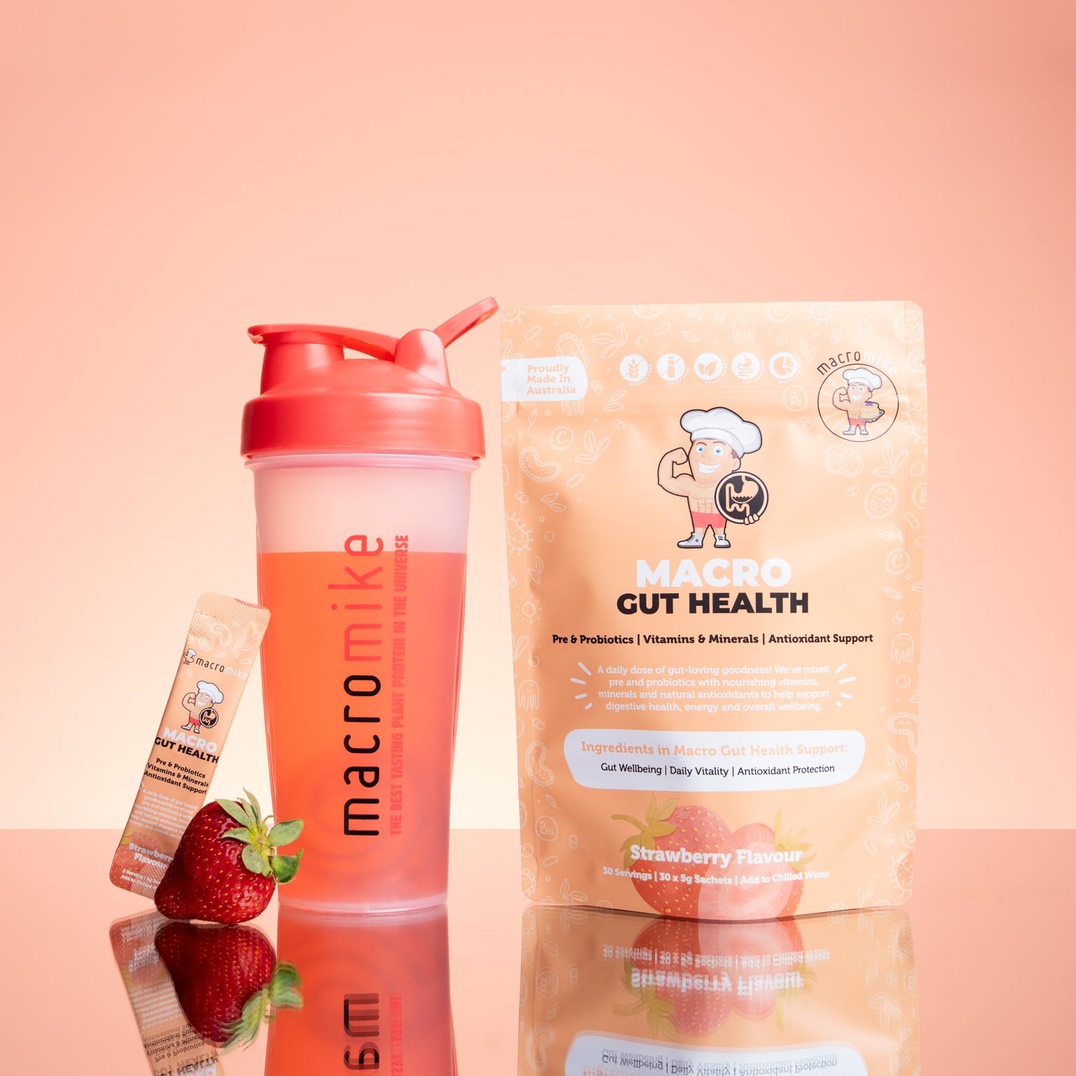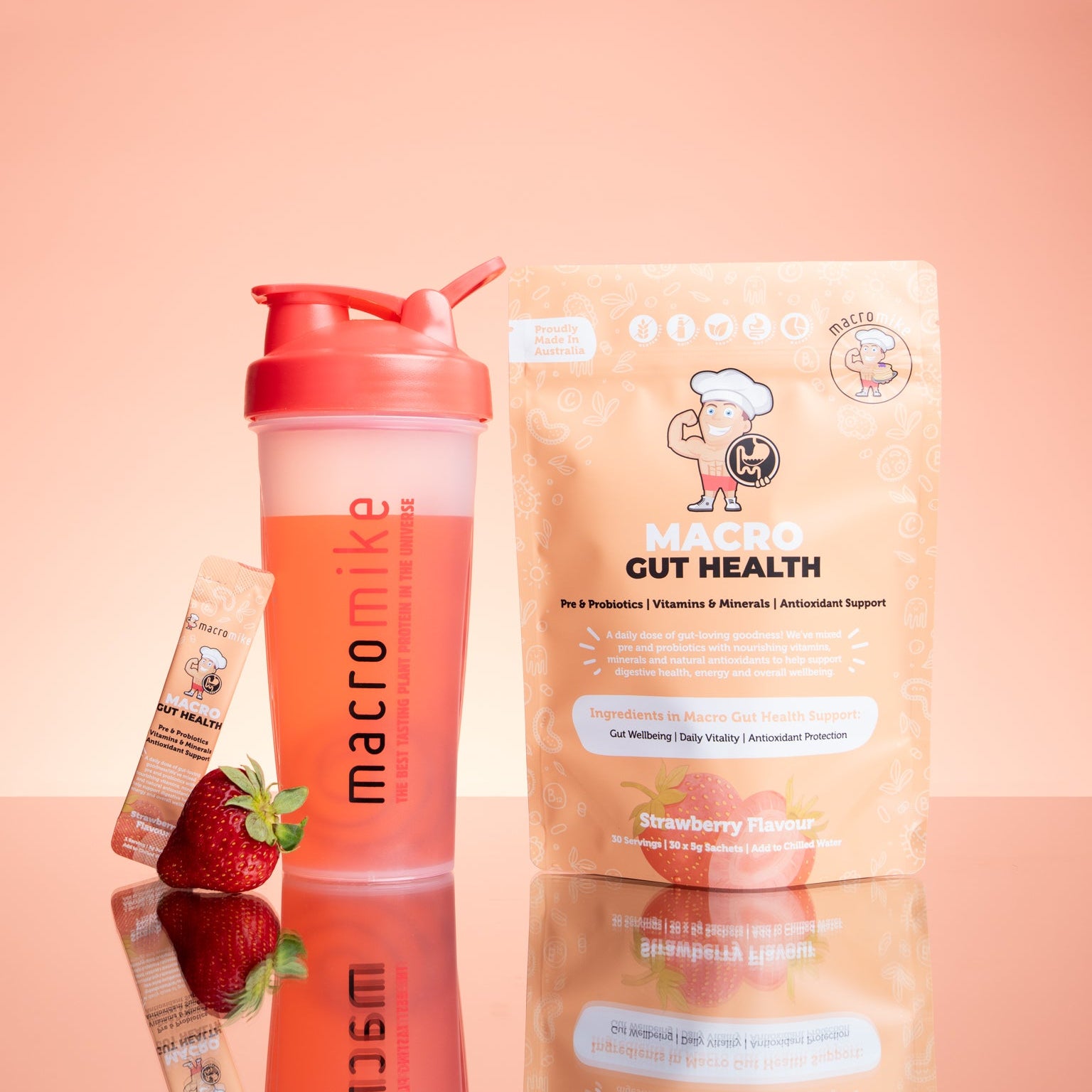 Enjoy a refreshing strawberry flavour you’ll look forward to, whether you take it in the morning for a gut kickstart and daily vitality, or in the evening to support overnight gut balance. It’s not a quick fix, it’s a simple, consistent ritual that fits into real life and complements your broader lifestyle. Made in Australia with high-quality ingredients and loved across the Macro Mike community with over 35,000 five-star reviews, Macro Gut Health makes feeling good feel easy 🌟.