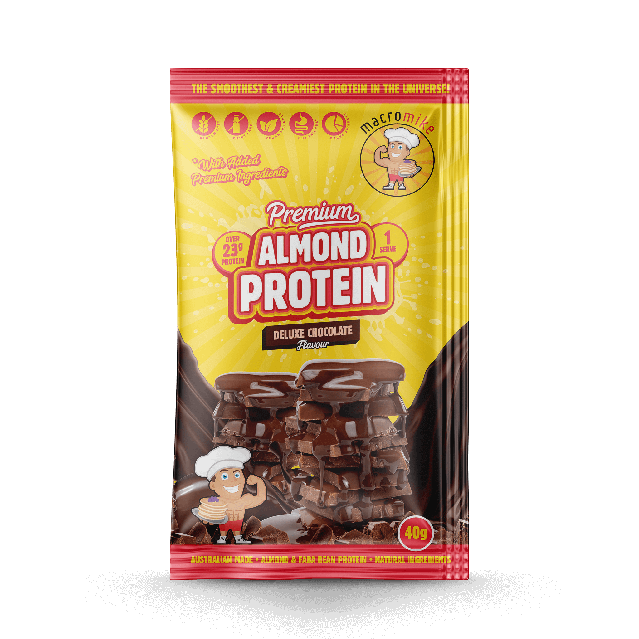 Tired of trying plant-based proteins that all taste the same? We hear you! Most brands use mass-produced formulas and cheap ingredients that don’t deliver on taste. That’s why we created Macro Mike, a game-changing range of protein blends using high-quality Almond and Faba Bean bases. Our protein is smooth, creamy, and absolutely delicious—unlike anything you’ve tried before!