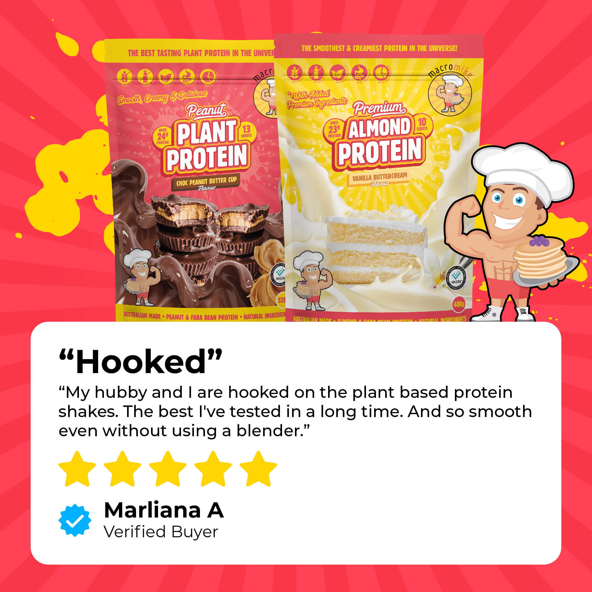 Tired of trying plant-based proteins that all taste the same? We hear you! Most brands use mass-produced formulas and cheap ingredients that don’t deliver on taste. That’s why we created Macro Mike, a game-changing range of protein blends using high-quality Peanut and Faba Bean bases. Our protein is smooth, creamy, and absolutely delicious—unlike anything you’ve tried before!