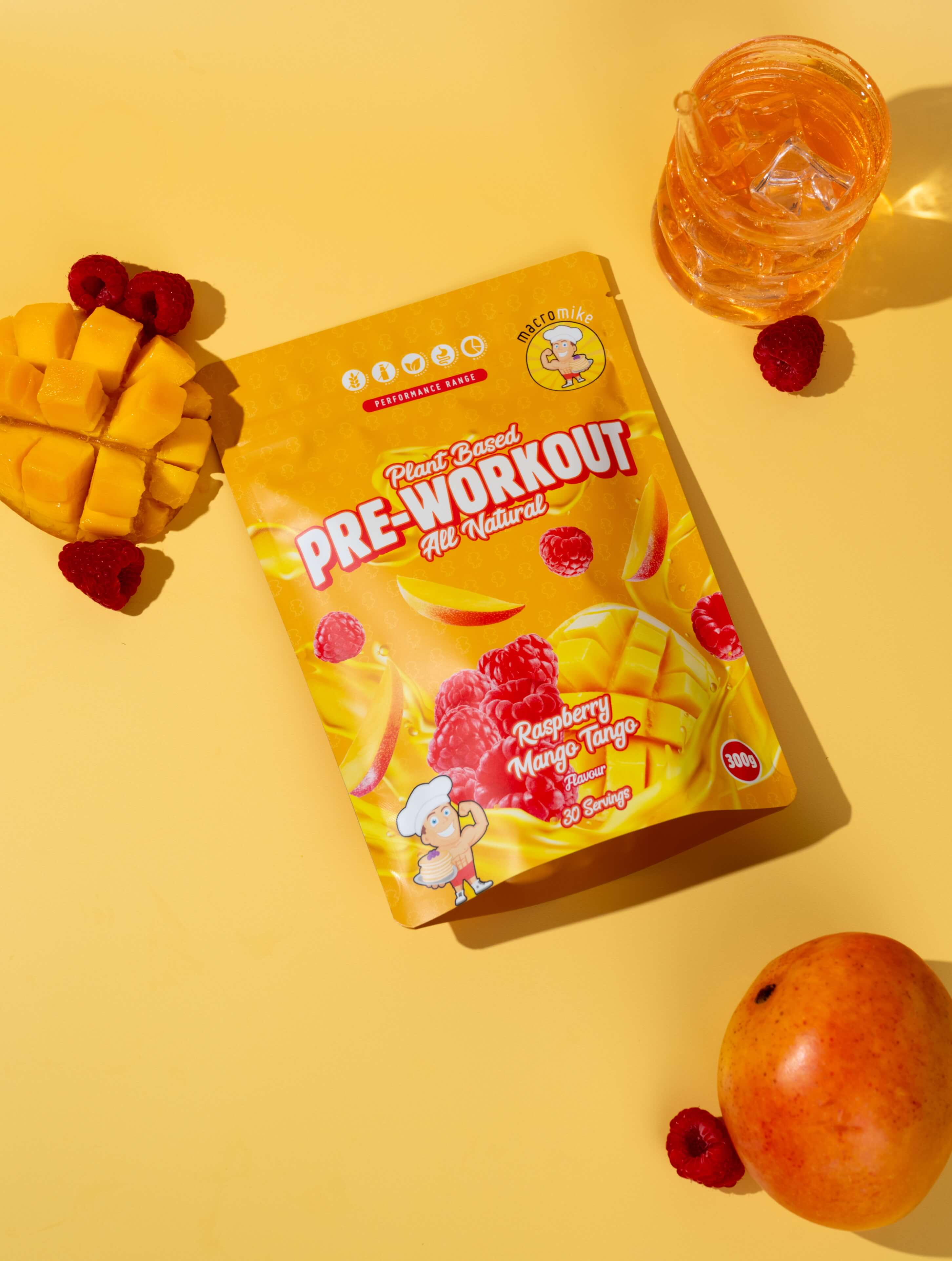 Mix, sip, and dominate every workout with Macro Mikeβs Raspberry Mango Tango Pre-Workout. π